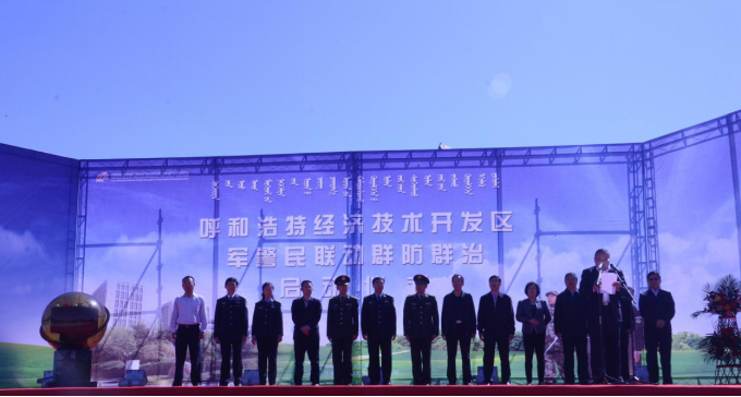 5月10日上午9時(shí)30分,呼和浩特經(jīng)濟(jì)技術(shù)開發(fā)區(qū)在如意廣場(chǎng)隆重舉行軍警民聯(lián)動(dòng)群防群治啟動(dòng)儀式。市委政法委副書記云成俊,呼和浩特經(jīng)濟(jì)技術(shù)開發(fā)區(qū)黨工委副書記云鳳英同志,呼和浩特市公安局經(jīng)濟(jì)技術(shù)開發(fā)區(qū)公安分局黨委書記、局長(zhǎng)李秋生同志,呼和浩特市公安局經(jīng)濟(jì)技術(shù)開發(fā)區(qū)公安分局黨委副書記、政委張曉靜同志,呼和浩特警備處司令部作訓(xùn)科科長(zhǎng)薛文同志,內(nèi)蒙古武警總隊(duì)副參謀長(zhǎng)曲爭(zhēng)同志,以及各相關(guān)單位領(lǐng)導(dǎo)參加了啟動(dòng)儀式。