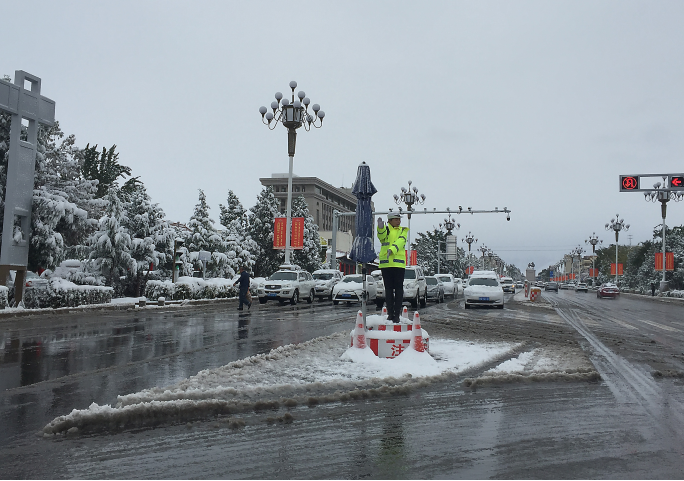10月9日清晨,國慶小長假結(jié)束后上班第一天,內(nèi)蒙古自治區(qū)阿拉善左旗突降大雪,早上6點左右,積雪已有一尺多厚,為防止因路滑導(dǎo)致車輛碰撞等交通事故的發(fā)生。阿左旗公安局第一時間啟動惡劣天氣應(yīng)急預(yù)案,在人車流量較大的路口路段增設(shè)警力,確保道路交通安全暢通。