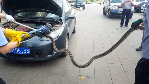 6月11日16時(shí)51分,阿左旗公安局指揮中心接到這樣一個(gè)特殊警情,在阿左旗巴丹吉林酒店門口的轎車輪子上盤著一條非常大的蛇,大概有3米多長(zhǎng),對(duì)周圍來往行人會(huì)造成危險(xiǎn)。在接到報(bào)警后,阿左旗公安局指揮中心本著就近出警的原則,迅速指派賀蘭山森林公安出警,最終通過有效處警,蟒蛇被成功捕獲。