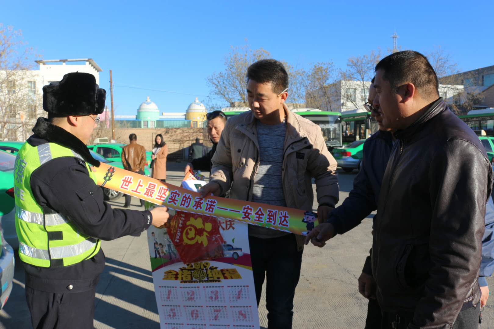 (袁麗 /通訊員)春運(yùn)期間,阿左旗公安交警深入轄區(qū)客運(yùn)企業(yè)開展“面對(duì)面”講述交通安全知識(shí)。在出租車公司,宣傳民警向出租車司機(jī)發(fā)放交通安全宣傳掛歷和春運(yùn)安全車貼,大力倡導(dǎo)“文明交通行為”、摒棄“交通陋習(xí)”、抵制“危險(xiǎn)駕駛行為”,宣傳交通安全法律法規(guī)和安全行車及乘車常識(shí),最大限度地預(yù)防和遏制道路交通事故,確保春運(yùn)交通客運(yùn)安全。