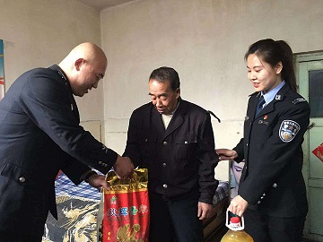(李志明/通訊員)2019年1月29日,新春將至,回民分局出入境管理大隊(duì)的民警帶著米面油等生活用品,一行三人看望了結(jié)對(duì)幫扶的貧困戶老人周大爺。