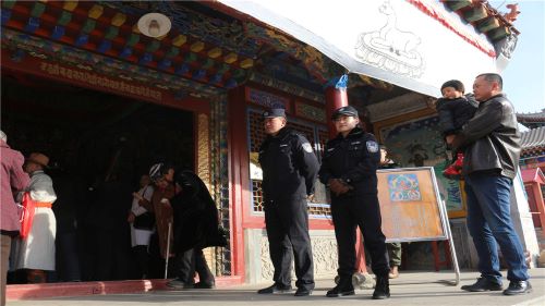 哪里有節(jié)慶活動,哪里就有警察的身影。在定遠營內(nèi)外,阿左旗公安局治安組、交警組、督察組為廟會安保活動保駕護航。昨日寒風(fēng)突襲,今日氣溫驟降到零下12攝氏度,戶外執(zhí)勤的民警們臉都凍得通紅,腿也凍得發(fā)麻,然而,此時的堅守變得更加的有意義。在擦肩而過人群中,民警們的眼睛里看到的是安全通道是否暢通、寺廟消防措施是否到位、擁擠的人群里是否有人“順手牽羊”,以及車輛是否停放有序。職業(yè)的敏感度讓民警們形成了確?!鞍踩谝弧钡睦砟?,保障各項節(jié)慶活動的萬無一失。