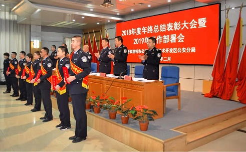 最后分局黨委書記、局長郝瑞琮同志指出,2019年,要堅持“穩(wěn)”字當頭,緊緊圍繞慶祝新中國成立70周年安保這個中心任務,要始終把維護國家政治安全、社會治安穩(wěn)定置于首位,堅決打贏政治安全保衛(wèi)戰(zhàn)。要切實增強主責主業(yè)意識,充分發(fā)揮治安防范和打擊違法犯罪兩大職能作用,全面升級打防管控,堅決打好嚴打犯罪主動戰(zhàn)、公共安全治理戰(zhàn)、社會防控整體戰(zhàn),確保轄區(qū)治安持續(xù)向好,切實擔負起維護社會穩(wěn)定、促進經濟發(fā)展、服務保障民生的重大職責使命。蹄疾步穩(wěn)推進改革強警、智慧公安、法治公安及基層基礎建設四項重點工作,依托分局已建成的智慧公安“五大中心”,切實增強利用大數(shù)據(jù)推進公安工作的本領,積極構建以大數(shù)據(jù)智能應用為核心的智慧警務新模式,為符合公安工作新時代要求、體現(xiàn)實戰(zhàn)化特點的現(xiàn)代警務體制奠定堅實基礎。2019年,經濟技術開發(fā)區(qū)公安分局全體民警將在市局黨委的領導下,認真貫徹執(zhí)行“三化一高”新思路新標準新要求,提高政治站位、增強“四個意識”、堅定“四個自信”、做到“兩個維護”,打造成一支信念堅定、執(zhí)法為民、敢于擔當、清正廉潔、政治過硬的公安隊伍,全力推動開發(fā)區(qū)公安工作再上新臺階,譜寫新篇章。