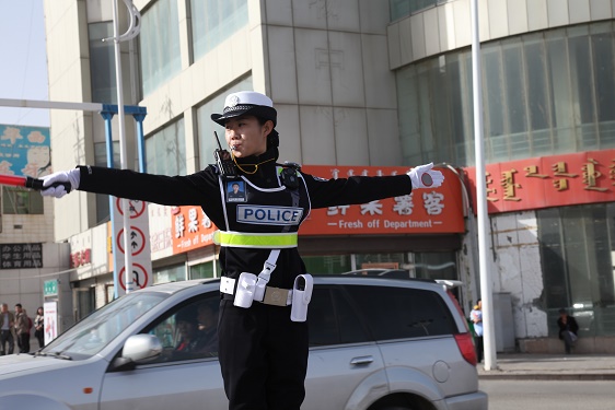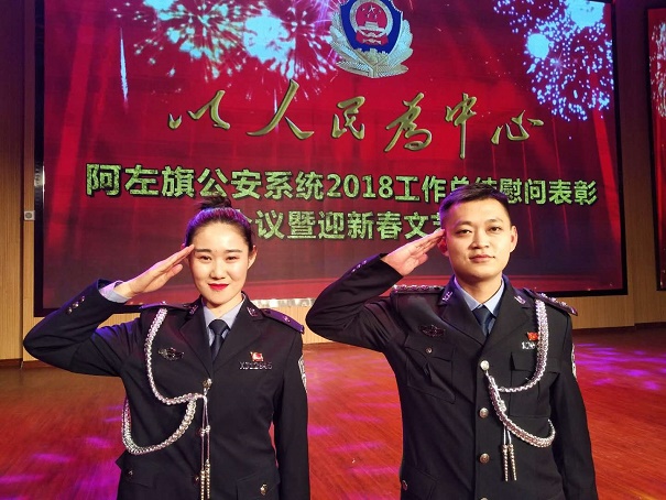 潘蕾是阿左旗公安局交警大隊(duì)女子特勤中隊(duì)的輔警,2016年2月通過層層選拔進(jìn)入公安隊(duì)伍,之后就是一連串的魔鬼式訓(xùn)練,周敏就是那位魔鬼教官,一名巡邏防暴警察。一襲特警裝扮,干凈利落的短發(fā),加上風(fēng)趣幽默又嚴(yán)肅認(rèn)真的言談,周敏的警察形象深深打動(dòng)了潘蕾的芳心。潘蕾說,周敏帶給她的是一個(gè)心靈成長的過程。從2016年3月她第一次走上了三尺崗臺(tái),身上貼了很多標(biāo)簽——城市名片、亮麗風(fēng)景線等,她和其他19名女警就像頭頂光環(huán)的天使被萬眾矚目。然而,無論風(fēng)吹日曬、嚴(yán)寒酷暑,還是感冒發(fā)燒、肚子疼,她們依然要堅(jiān)持加高峰、執(zhí)勤、巡邏……夏天的白色執(zhí)勤服被汗水漬地發(fā)黃;春秋的藏藍(lán)色執(zhí)勤服也被曬出了馬甲的形狀,冬天的皮衣更是在一起一落的手勢中磨破了袖子。潘蕾說曾經(jīng)她氣餒地想放棄這份工作,可每次都被周敏三言兩語地說通了。如今,警察的榮光已經(jīng)像血液般融進(jìn)了她的心里,讓她努力做得更好。