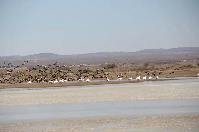 阿左旗森林公安局及各個(gè)派出所在候鳥過境區(qū)域、野生動(dòng)物經(jīng)常出沒區(qū)域、人流密集區(qū)等區(qū)域通過懸掛橫幅、發(fā)放宣傳單、張貼倡議書的形式進(jìn)行宣傳及講解,為了達(dá)到人人參與的目的,民警一戶一戶到農(nóng)牧民家中講解保護(hù)野生動(dòng)物相關(guān)的法律法規(guī)、發(fā)放宣傳單,向群眾面對面地宣傳保護(hù)過境候鳥維護(hù)生態(tài)平衡的重要性,為群眾釋疑解惑,讓保護(hù)過境候鳥成為百姓自覺行為。敖倫布拉格派出所所長王建祖說:“現(xiàn)如今,經(jīng)過我們的宣傳,居民們保護(hù)候鳥和野生動(dòng)物的意識越來越強(qiáng),在候鳥遷徙時(shí)候,許多居民看見了珍稀的候鳥還會積極和我們聯(lián)系,讓我們多加關(guān)注,這樣的成果讓我覺得我們民警的辛苦付出都是值得的。”最近,他就在轄區(qū)居民的告知下,發(fā)現(xiàn)了轄區(qū)水域內(nèi)的天鵝,除此之外還有大量的赤麻鴨、赤嘴潛鴨及少量黃嘴白鷺等候鳥。