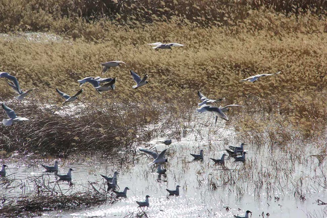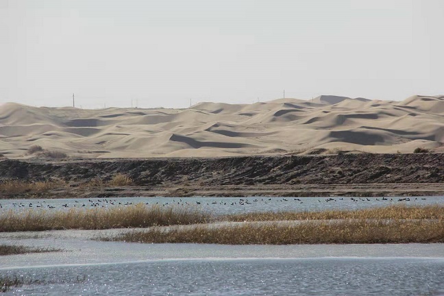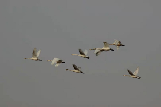 家住巴彥木仁蘇木套海嘎查的張學(xué)文、田月林是當(dāng)?shù)匦∮忻麣獾霓r(nóng)民攝影愛好者,他們同時(shí)也是烏海攝影家協(xié)會的會員。阿左旗森林公安局巴彥木仁派出所在了解他們的情況后,主動(dòng)找到他們進(jìn)行溝通,發(fā)動(dòng)他們參與到保護(hù)候鳥的行列中,在拍攝候鳥的時(shí)候,注意觀察、發(fā)現(xiàn)、收集可疑人員和線索,協(xié)助森林公安民警共同保護(hù)這些鳥類“精靈”?!拔覀兛隙〞Wo(hù)這些鳥類的,只有它們安全生存了,我們這些攝影愛好者才拍到好照片,所以協(xié)助森林公安保護(hù)鳥類我們義不容辭”,田月林樸實(shí)的話語,讓我們感受到了他對這些“精靈”的守護(hù)之心。今年張學(xué)文和田月林在巴彥木仁蘇木境內(nèi)發(fā)現(xiàn)了大天鵝、白琵鷺、灰鶴,赤麻鴨、銀鷗、等鳥類。