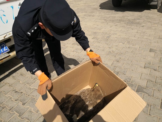 (李夢(mèng)/通訊員)近年來,阿左旗森林公安局不斷加強(qiáng)野生動(dòng)物保護(hù)力度,積極開展形式多樣的宣傳活動(dòng),轄區(qū)廣大群眾保護(hù)野生動(dòng)物意識(shí)日漸提升。2019年4月12日上午,阿左旗森林公安局刑警治安隊(duì)接到牧民報(bào)警電話稱,在自家農(nóng)場(chǎng)附近發(fā)現(xiàn)一只類似老鷹的鳥類,請(qǐng)森林公安民警盡快進(jìn)行救助。
