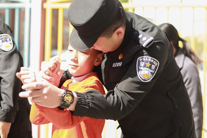 活動中,特警志愿者為孩子們表演了精心準(zhǔn)備的才藝和擒敵術(shù)節(jié)目,并向孩子們介紹了特警隊伍及其工作職責(zé),展示了特警使用的部分裝備和警械。為了拉近與孩子們的距離,志愿者還邀請小朋友們親身體驗學(xué)習(xí)擒敵術(shù),現(xiàn)場扮裝“小警官”。過程中,特警志愿者與孩子們教學(xué)互動、親切交流,氣氛融洽溫馨,充滿了歡聲笑語。隨后,特警志愿者觀看了小朋友們精彩的獨唱及手語節(jié)目演出,感受了殘障兒童成長的不易和教師付出的艱辛。