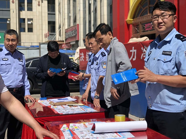 (朵勒娜/通訊員)2019年6月3日上午,呼和浩特市經(jīng)濟(jì)技術(shù)開發(fā)區(qū)公安分局食藥環(huán)領(lǐng)域掃黑除惡專項(xiàng)行動負(fù)責(zé)人鄭?;萃?,帶領(lǐng)開發(fā)分局食藥環(huán)偵大隊(duì),并聯(lián)合開發(fā)區(qū)食藥監(jiān)局、環(huán)保局一同前往開發(fā)區(qū)如意轄區(qū)蒙輝超市附近人口密集地,開展食藥環(huán)領(lǐng)域掃黑除惡宣傳活動。