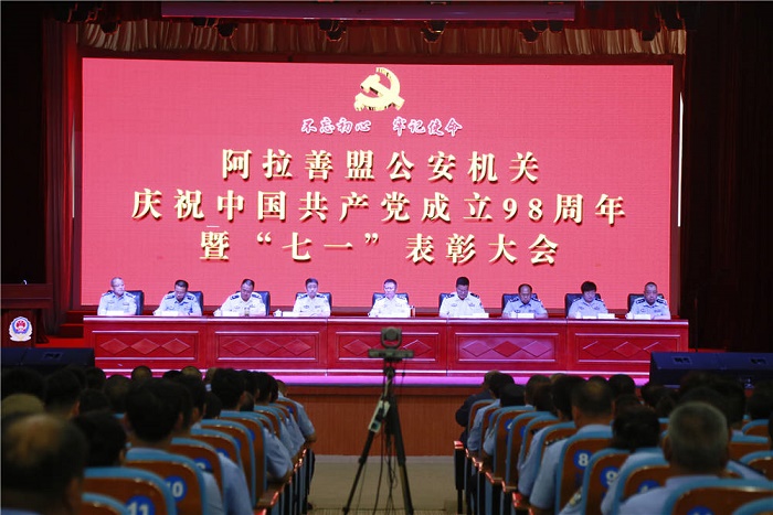 6月30日上午,在中國共產(chǎn)黨98歲華誕來臨之際,阿拉善盟公安機(jī)關(guān)隆重召開慶祝中國共產(chǎn)黨成立98周年暨“七一”表彰大會(huì)。副盟長、盟公安局黨委書記、局長賈境文出席會(huì)議并作講話,盟公安局在家黨委成員、盟公安局機(jī)關(guān)、阿左旗公安局、邊境管理支隊(duì)、森林公安局全體黨員民警在主會(huì)場(chǎng)參會(huì),各旗區(qū)公安(分)局全體黨員民警在分會(huì)場(chǎng)參會(huì)。會(huì)議由盟公安局黨委副書記、副局長敖巴特爾主持。