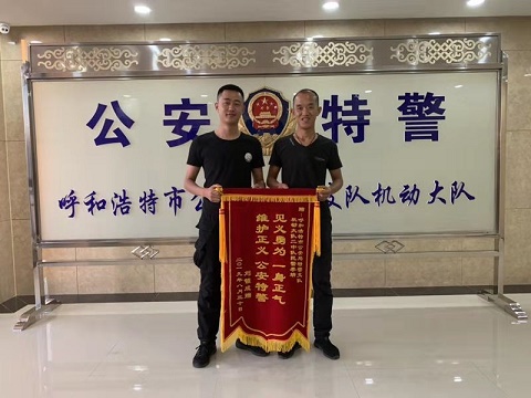 (高烏達(dá)/通訊員)2019年8月30日下午17時(shí)許,特警支隊(duì)一天的訓(xùn)練剛剛結(jié)束,市民劉鎖成就急急忙忙的找了過來,將一面寫有“維護(hù)正義公安特警,見義勇為一身正氣”的錦旗送到了機(jī)動(dòng)大隊(duì)二中隊(duì)李靖的手中,還不住的向他表示感謝,李靖對(duì)他說:“同志,這是我的職責(zé)所在,也是我們應(yīng)該做的!”