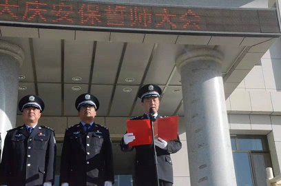 矢志不渝做“兩個(gè)屏障”的忠誠(chéng)衛(wèi)士,與偉大祖國(guó)共榮耀,與神圣警徽共輝煌!全體人員斗志昂揚(yáng),巡邏車隊(duì)嚴(yán)陣以待?,F(xiàn)場(chǎng)近200人員,面對(duì)國(guó)旗,莊嚴(yán)宣誓:“不忘初心,牢記使命,對(duì)黨忠誠(chéng),聽黨指揮,敢于擔(dān)當(dāng),勇于奉獻(xiàn),以最高標(biāo)準(zhǔn),最嚴(yán)要求,踐行新使命,忠誠(chéng)保大慶!”警魂忠誠(chéng)、警燈閃爍、警民同心。