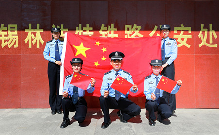 “我和我的祖國(guó),一刻也不能分割,無論我走到哪里,都流出一首贊歌……”,熟悉的旋律,動(dòng)人的歌詞,錫林鐵警黨員民警把最真摯的祝福獻(xiàn)給祖國(guó),他們用歌聲唱出了對(duì)中國(guó)共產(chǎn)黨的擁戴、對(duì)偉大祖國(guó)的祝福,唱出了人民公安忠誠(chéng)于黨、忠誠(chéng)于祖國(guó)、忠誠(chéng)于人民的忠誠(chéng)情懷,唱出了黨員民警積極昂揚(yáng)、飽含激情的精神面貌。全體黨員民警與國(guó)旗合影,用忠誠(chéng)捍衛(wèi)信仰,用“警察藍(lán)”守護(hù)“國(guó)旗紅”,激勵(lì)全體民警立足本職,把愛國(guó)奮斗精神轉(zhuǎn)化為實(shí)際行動(dòng),全力做好各項(xiàng)公安工作,用行動(dòng)向新中國(guó)成立70周年華誕獻(xiàn)禮!
