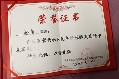 在疫情面前,他是銳意進(jìn)取的“實干者”。疫情防控工作是辛苦的,面對每天疫情發(fā)展態(tài)勢和巨大的工作量,他曾凍得雙手發(fā)紫,可是因為自己是人民公安是一線志愿者,他說:“新時代,新青年,就應(yīng)該在祖國最需要的時候挺身而出!”他與社區(qū)工作者們共同宣傳疫情防控,配合物業(yè)做好小區(qū)的公共衛(wèi)生消毒工作,入戶排查隱患,安撫隔離群眾,為隔離群眾送快遞倒垃圾,配合街道辦領(lǐng)導(dǎo)慰問貧困兒童送電腦并組裝好教授孩子如何使用解決了上網(wǎng)課難等問題。他堅決做好自己本職工作,守好疫情防控“第一關(guān)”,做好疾病預(yù)防和宣傳,切實做到早發(fā)現(xiàn)、早報告、早隔離、早治療,爭分奪秒遏制疫情攜帶者流動。為打贏這場疫情防控狙擊戰(zhàn)無怨無悔沖鋒在前!這種以大局為重、勤勉努力、認(rèn)真嚴(yán)謹(jǐn)、他是工作的精神受到社區(qū)同志們的一致好評。