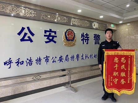(高烏達/通訊員)“感謝呼和浩特市公安機特警支隊機動大隊高博同志拾金不昧,我丟失的是一部蘋果手機,價值近萬元,損失錢財事小,手機里的信息很重要,丟失了會很麻煩,高博同志撿到了手機絲毫不動心,尤其現(xiàn)在還處在疫情期間,工作那么繁忙,還想方設法還給我,我真的是非常感動,也非常感謝,今天贈送錦旗一面以表我的謝意?!苯?,市民殷桃利女士在經(jīng)過多方打聽在疫情狀況減輕一段時間后將一面寫有“為民服務、忠于職守”的錦旗送到呼市公安局特警支隊機動大隊,表達她對特警高博同志拾金不昧高尚品德最誠摯的謝意。