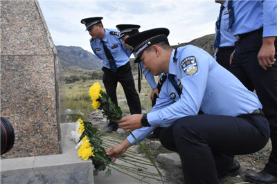(牛鑫/通訊員)“凜然英雄氣、激蕩天地間,革命先烈,請您放眼望一望這可愛的中國,國富民強、四海平安!我們忘不了您的豐功偉績,忘不了您為這片土地灑下的熱血……”9月8日,在內(nèi)蒙古阿拉善旗第一任工委書記曹動之烈士殉難地,阿拉善盟公安局第三黨支部和邊境管理支隊政治處黨支部聯(lián)合開展了“緬懷革命先烈 傳承紅色基因”主題黨日活動。