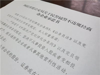 監(jiān)督辦根據(jù)《中國共產(chǎn)黨紀(jì)律處分條例》、《公務(wù)員法》以及黨員領(lǐng)導(dǎo)干部廉潔自律有關(guān)規(guī)定,制定《阿拉善盟公安局關(guān)于民警輔警不違規(guī)經(jīng)商辦企業(yè)承諾書》,以此次教育整頓工作為契機(jī),進(jìn)一步加強(qiáng)違規(guī)經(jīng)商辦企業(yè)整治工作力度,以徹底的自我革命精神深入整治公安隊伍違規(guī)經(jīng)商辦企業(yè)問題。