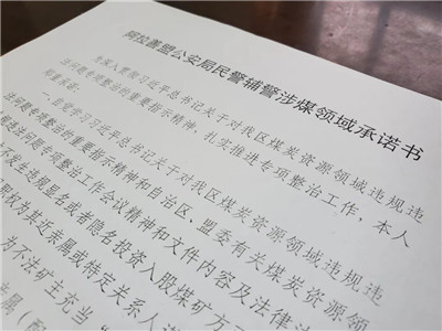 結(jié)合目前全盟公安機(jī)關(guān)正在開展的煤炭資源領(lǐng)域違規(guī)違法問題專項整治工作,監(jiān)督辦研究制定了《阿拉善盟公安局民警輔警涉煤領(lǐng)域承諾書》,切實把抓好煤炭資源領(lǐng)域違規(guī)違法問題專項整治監(jiān)督檢查工作作為增強(qiáng)“四個意識”、堅定“四個自信”、做到“兩個維護(hù)”的具體行動,旗幟鮮明、態(tài)度堅決、全程監(jiān)督、務(wù)求實效,著力解決好公安機(jī)關(guān)煤炭資源領(lǐng)域違規(guī)違法問題。