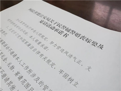 為認(rèn)真貫徹執(zhí)行中央八項規(guī)定精神,監(jiān)督辦制定《阿拉善盟公安局關(guān)于民警輔警婚喪嫁娶及宴請活動承諾書》,牢固樹立全體民警輔警廉潔從政意識,努力在阿拉善盟公安隊伍營造風(fēng)清氣正、文明節(jié)儉的良好風(fēng)尚。