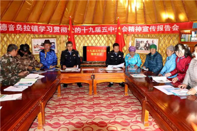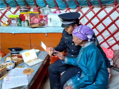 活動中,派出所針對地廣人稀、以蒙古族群眾為主體的轄區(qū)實際問題,特意選擇蒙古族民警用民族語言解讀牧民群眾關(guān)心、關(guān)注的問題,民警通過與群眾“拉家?!?、現(xiàn)場講解、發(fā)放宣傳單、播放微視頻等形式,積極向轄區(qū)群眾就全會提出的“優(yōu)先發(fā)展農(nóng)業(yè)農(nóng)村,全面推進鄉(xiāng)村振興”內(nèi)容進行了重點講解,確保黨中央的精神能夠第一時間傳遞到偏遠(yuǎn)牧區(qū)。