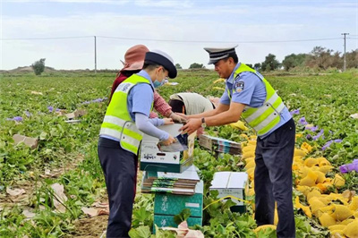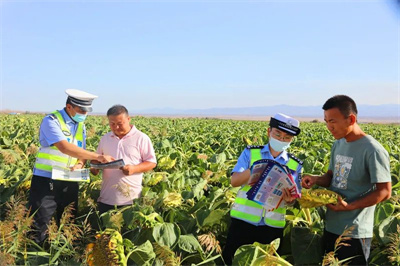 在向日葵采蜜基地,宣傳小分隊(duì)走進(jìn)田間地頭,零距離、接地氣地為采蜜工人詳細(xì)講解出行安全常識,叮囑工人在辛勤汗水化作豐收喜悅的同時,莫要忽視交通安全,養(yǎng)成良好的交通安全意識,暢行安全路,才能幸福奔小康。
