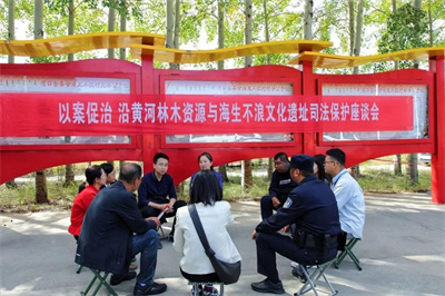 本次聯(lián)合宣傳小組還就如何共同預(yù)防破壞林木類犯罪和保護(hù)文物遺址所在區(qū)域進(jìn)行座談,旨在將各單位職責(zé)統(tǒng)一起來(lái)“擰成一股繩”,建立長(zhǎng)效機(jī)制,變末端治理為前端預(yù)防,真正為打響黃河“幾字彎”攻堅(jiān)貢獻(xiàn)法治力量,為黃河流域生態(tài)保護(hù)和高質(zhì)量發(fā)展貢獻(xiàn)合力。