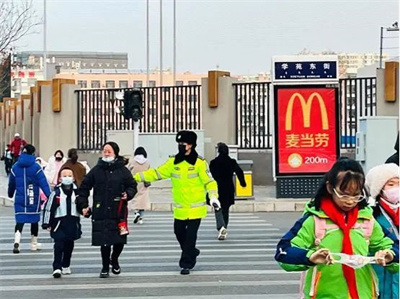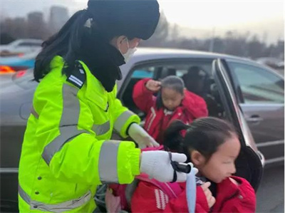 “護學(xué)崗”崗位雖小,卻是一份沉甸甸的責任?!爸x謝警察阿姨!”這是他們聽到最多的話,也是在寒風(fēng)刺骨中最暖人的聲音。