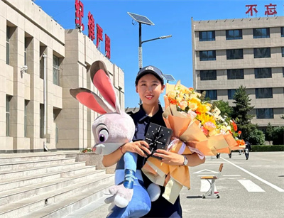 在她身上堅(jiān)韌、不服輸?shù)膭艃汉妥孕抨?yáng)光的笑容就像是《瘋狂動(dòng)物城》中的朱迪警官的原型,于是,同事們們賦予了她“兔子警官”這樣一個(gè)可愛(ài)又可敬的稱呼。