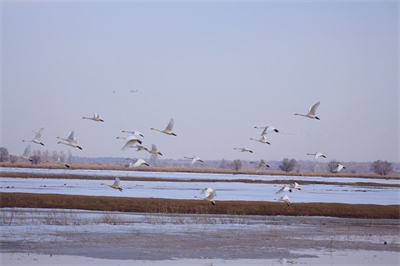 (姜鑫/通訊員)春回大地,草長鶯飛,又到一年候鳥北歸季。近年來,托克托縣持續(xù)推動黃河流域生態(tài)保護(hù)和高質(zhì)量發(fā)展,多措并舉不斷強(qiáng)化濕地保護(hù)和修復(fù),黃河濕地生態(tài)環(huán)境得到極大改善。進(jìn)入3月以來,在托克托縣黃河濕地內(nèi),已經(jīng)有200余種候鳥在此處棲息。成群結(jié)隊(duì)的天鵝、鴻雁、赤麻鴨等各種珍稀鳥類,時(shí)而三五成群、展翅翱翔,時(shí)而戲水游玩、引吭高歌,展現(xiàn)出了濕地特有的生態(tài)畫卷。