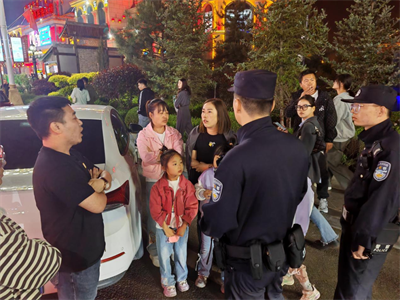 “路上有警察疏導(dǎo)交通,景點(diǎn)有警察值守,山腳下還有警察巡邏……天很晚了也能看到警察,這讓我們游客很安心?!币晃粡纳轿魇砗艉秃铺厥新糜蔚挠慰驮趷腊迓糜螆@區(qū)游玩時稱贊道。