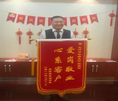 (本網(wǎng)訊:楊彩霞)2018年1月22日,XX建筑有限公司總經(jīng)理,來(lái)到工商銀行內(nèi)蒙古分行營(yíng)業(yè)部呼哈路支行,為大堂經(jīng)理宋寶軍贈(zèng)送了一面寫(xiě)著“愛(ài)崗敬業(yè) 心系客戶(hù)”的錦旗,表達(dá)對(duì)工行呼哈路支行以及大堂經(jīng)理宋寶軍一直以來(lái)用真心服務(wù)客戶(hù)、及時(shí)為客戶(hù)排憂解難的感謝之情。