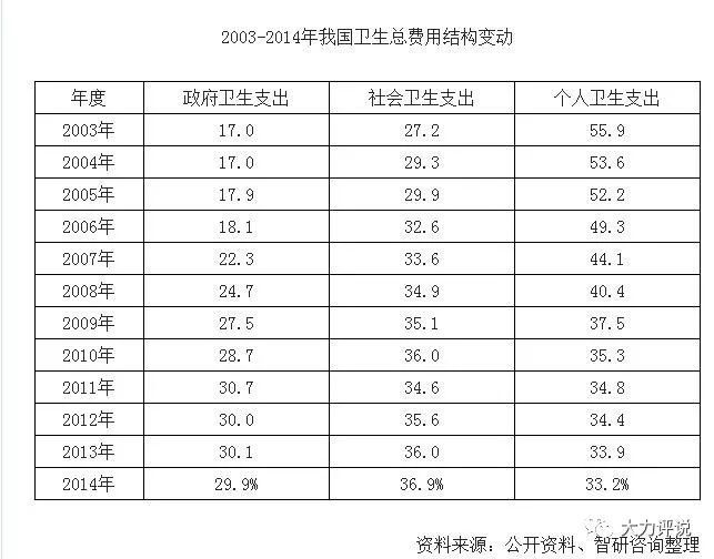 值得一提的是,有數(shù)據(jù)顯示,自2003年以來我國衛(wèi)生總費(fèi)用的結(jié)構(gòu)發(fā)生了明顯變化,政府和社會的衛(wèi)生支出逐年大幅增加,而個人衛(wèi)生支出也呈下降趨勢,其中,2014年占全部支出的33.2%。