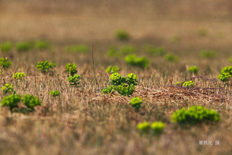 這里是去年燒過的草原,今年狼毒花先于牧草長出來了。牧民朋友給我講述了個中原因,狼毒花的生命力遠遠超過牧草,當(dāng)野火燒過之后,牧草的根部大多被燒死了,而狼毒花卻安然無恙。看來這片草原的狼毒花已經(jīng)開始肆孽,強壓牧草,逐步占居了這塊寶地。