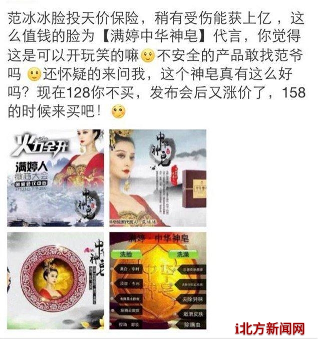 范冰冰還代言了兩款微商產(chǎn)品,其中一款是“什么部位都能洗,無所不能”的神皂,售價上百塊。