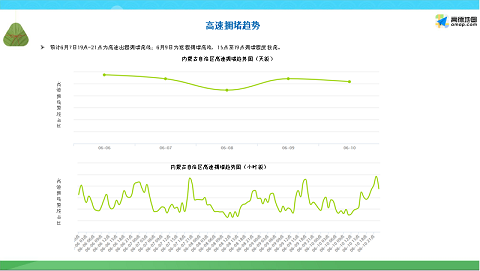 預(yù)計(jì)6月7日19點(diǎn)-21點(diǎn),為高速出程擁堵高峰;6月9日為返程擁堵高峰,15點(diǎn)至19點(diǎn)擁堵程度較高。