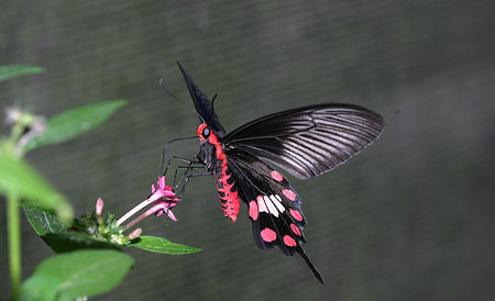 例如一類我國(guó)南方常見(jiàn)的無(wú)毒的玉帶鳳蝶,其部分雌蝶展現(xiàn)出模仿有毒的紅珠鳳蝶的鮮艷花紋,由于這一類假警戒的模仿形式首先由英國(guó)博物學(xué)家貝茨在1862年研究巴西蝶類時(shí)提出,因此稱為“貝氏擬態(tài)”。