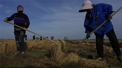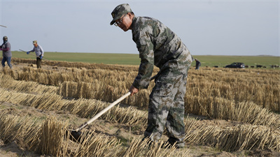 劉再義埋沙障。(來源:呼倫貝爾市融媒體中心)