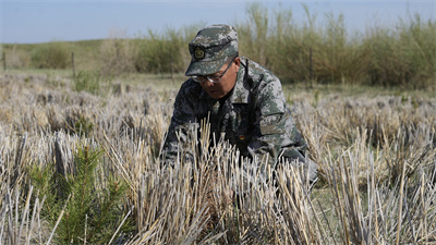 劉再義在防沙治沙一線。(來源:呼倫貝爾市融媒體中心)