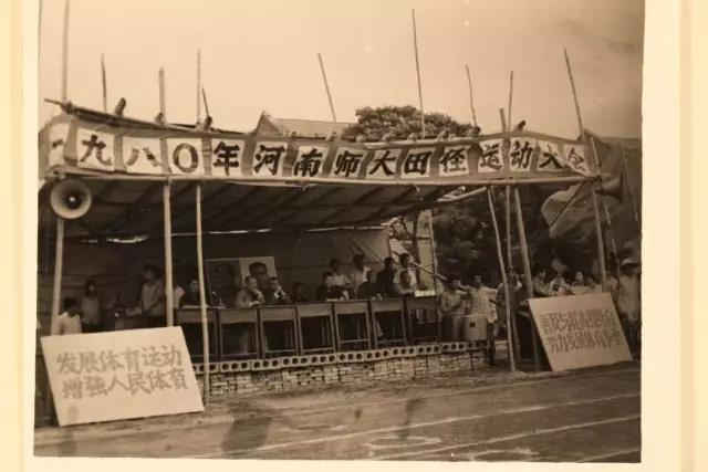 圖為:1980年,河南大學(xué)河南師范大學(xué)(1979—1984)時(shí)期田徑運(yùn)動(dòng)大會(huì)場(chǎng)景