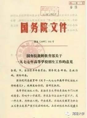圖為:國(guó)務(wù)院批轉(zhuǎn)教育部關(guān)于一九七七年高等學(xué)校招生工作的意見(jiàn)