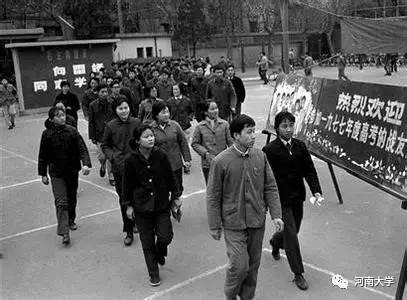 圖為:1977年恢復(fù)高考,考生邁步進(jìn)入考場(chǎng)