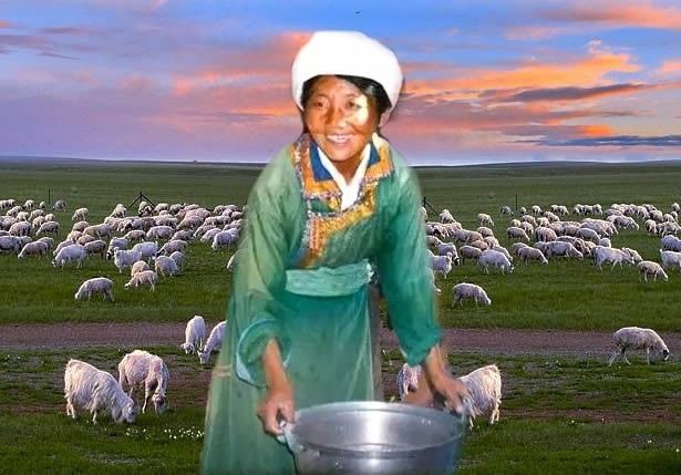 陳麗霞已儼然標(biāo)準(zhǔn)的蒙古牧民。歲月在她的臉上留下了痕跡,但她永遠(yuǎn)是這樣微笑著、勞作著??梢韵胂螽?dāng)年的她是一個(gè)很漂亮的小姑娘。