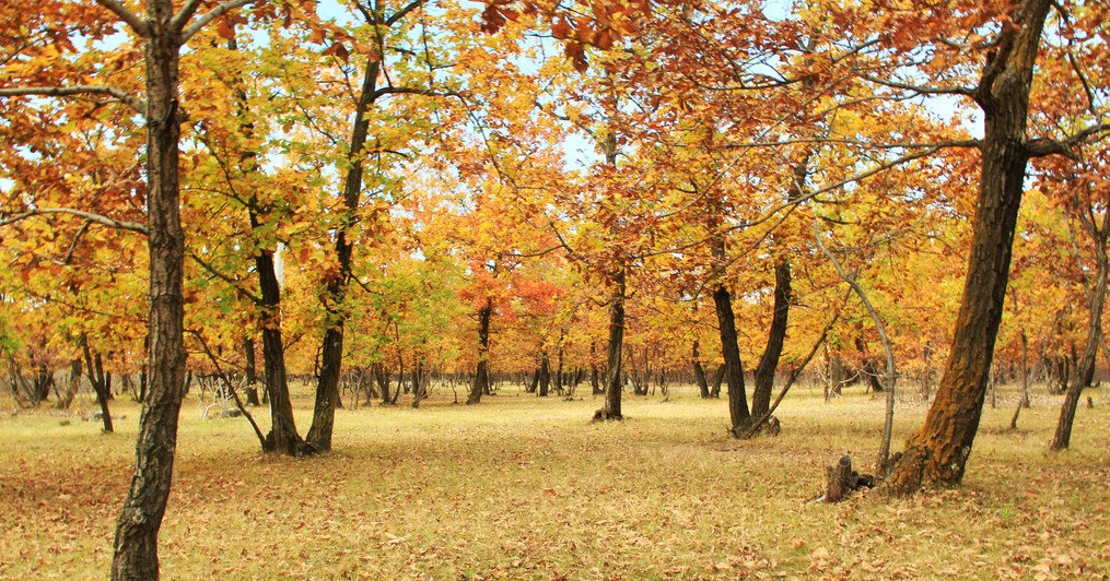 纖秀的山脊被柞樹妝點得雄渾有力,向著陽光密密匝匝地挺立著。柞樹葉可以養(yǎng)蠶,柞樹葉可以陰干,碾成細粉,炒焦制作成中草藥。果實橡子可以果腹,橡子面還可以和面,做成餑餑吃。察爾森老人都還記得當年小日本禁止中國人吃大米,就將橡子面摻到主食里,給勞工吃,將產(chǎn)出的新大米運回本國。