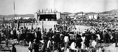記得小時(shí)候在草原牧區(qū)生活時(shí),旗里每年的八月份都要舉辦那達(dá)慕大會。我們像盼望過大年一樣盼著開幕那天。天天往旗南郊那一片平坦的草地上跑。那里,旗里的各單位和來自草原的牧民,正在忙碌著搭帳篷、架蒙古包,大卡車、大馬車、勒勒車穿梭往來,忙著運(yùn)送物資。當(dāng)眾多的帳篷和蒙古包圍繞著主席臺形成一個大大的圓圈時(shí),盼望已久的那達(dá)慕就要來了。