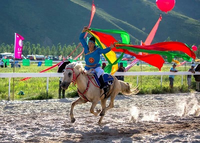 賽馬場上那些七八歲、十幾歲的小騎手,躍上自己的賽馬,隨著出發(fā)的號令如弓箭般射了出去。馬蹄生煙,塵土飛揚(yáng),馬兒像風(fēng)一樣飛向遠(yuǎn)方,很快就移出了人們的視野。在人們的耐心等待中,一匹又一匹賽馬相繼返回了終點(diǎn)。得勝的小騎手,在大家的喝彩聲中,被大人抱下馬背,忍著鏟破屁股的疼痛,像英雄一樣露出了勝利者的笑容。