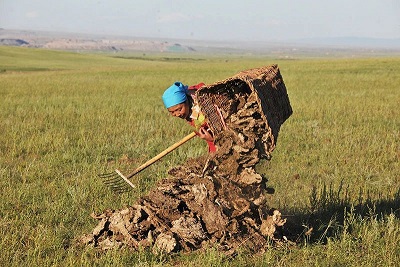 游牧民族無論走到哪里都離不開牛糞。遷徒時(shí)也會(huì)將牛糞與蒙古包和糧食一并帶走,以防下雨時(shí)沒有燃料可燒。在過去絕大部分時(shí)間里牧人籮筐不離肩,走到哪里都會(huì)撿牛糞,就連熬奶茶的功夫也會(huì)出去撿一些牛糞回來。蒙古人除了讓孩子從小學(xué)會(huì)騎馬,還會(huì)教孩子撿牛糞,通過這樣的勞動(dòng)磨煉孩子的耐心,讓她們明白“積少成多”的重要意義。