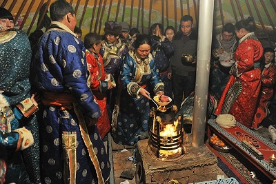 牛糞,在蒙古族生活中根據(jù)顏色和季節(jié)的不同有著各自的名稱。如冬天的牛糞叫“呼勒都古斯”,耐燒但火勁兒??;秋天的牛糞叫“哈日阿日嘎勒”,火勁兒大,燃燒快;夏天的牛糞叫“希熱阿日嘎勒”,火勁兒稍弱一些;隔年的牛糞叫“察干阿日嘎勒”。蒙古人一般不撿隔年的牛糞,而是讓它留在野外,這樣牛糞就會(huì)經(jīng)過雨水的沖刷滲入泥土,使土質(zhì)更肥沃,讓牧草更豐茂。