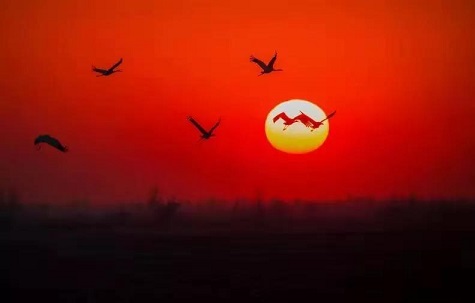 圖牧吉國家級自然保護區(qū)我去過多次,至今我的兒子仍在那里供職,經(jīng)年累月與遷徙過往的候鳥“打交道”。候鳥中的鶴,珍稀物種,類如圖騰,人人鐘愛有加;茲建議圖牧吉人將這幅“大片”妥善處理,張掛四壁,傳揚萬方,取名《天地和諧圖》(取“和”與“鶴”同音),彰顯我中華民族之環(huán)保意識與共同體視野。