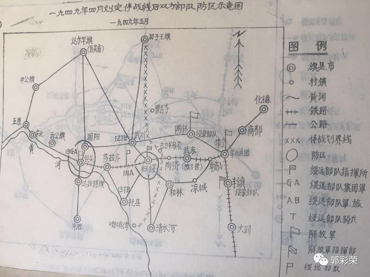 從民國三十八年正月初一到民國三十八年九月十九日,在綏遠大地上就出現(xiàn)了一塊土地兩種旗幟的景觀:白塔車站這邊飄揚的是青天白日旗,旗下營那邊是獵獵紅旗。在兩面旗幟中間,是三十余里的非軍事緩沖區(qū)。