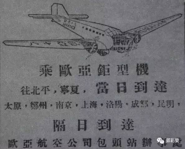 民國時,包頭歐亞航空公司的宣傳廣告。
